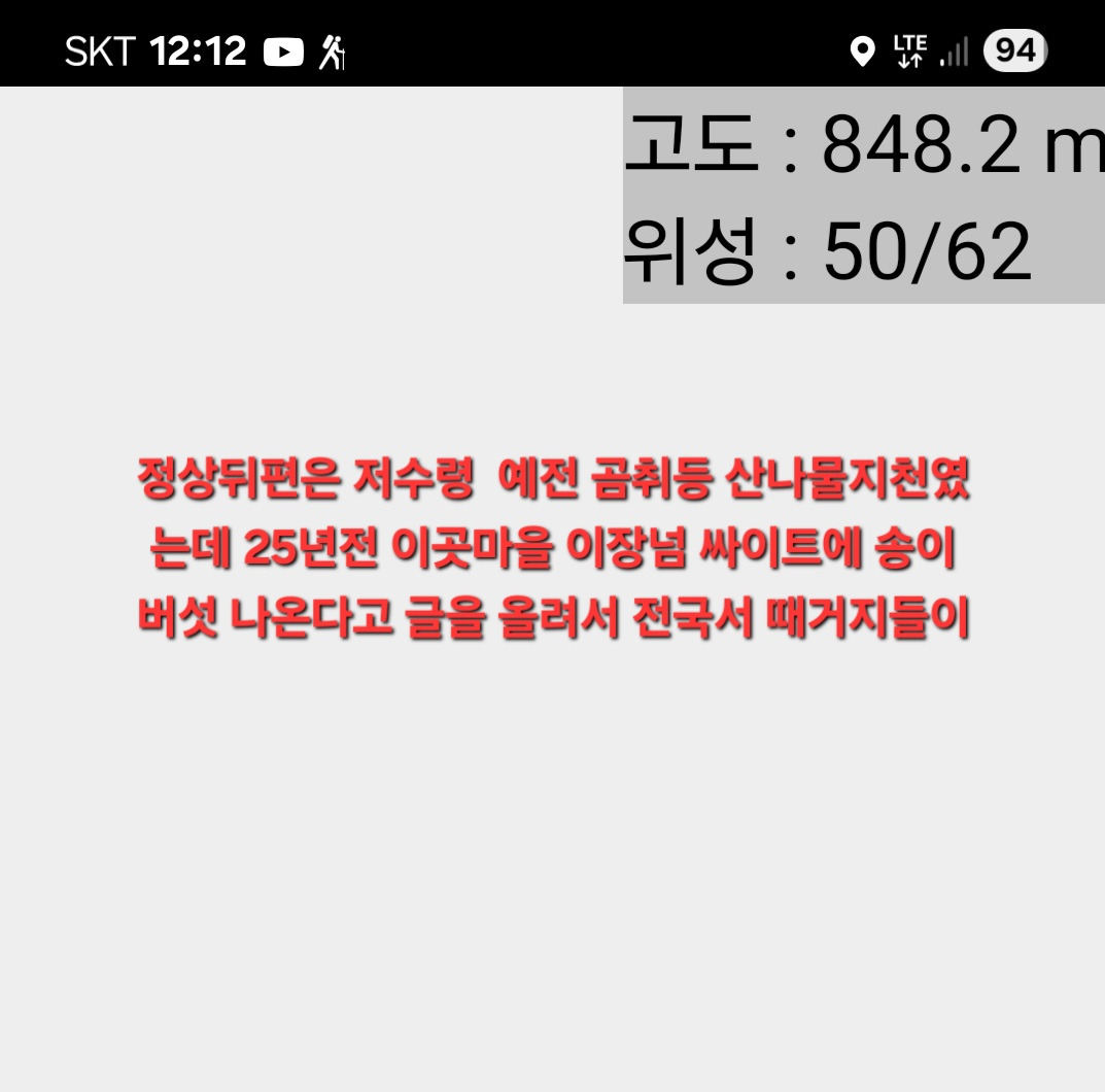 이곳이장넘이 싸이트에 송이나온다고 올리는 바람에 때거지들 왔고 현재는 입산금지구역