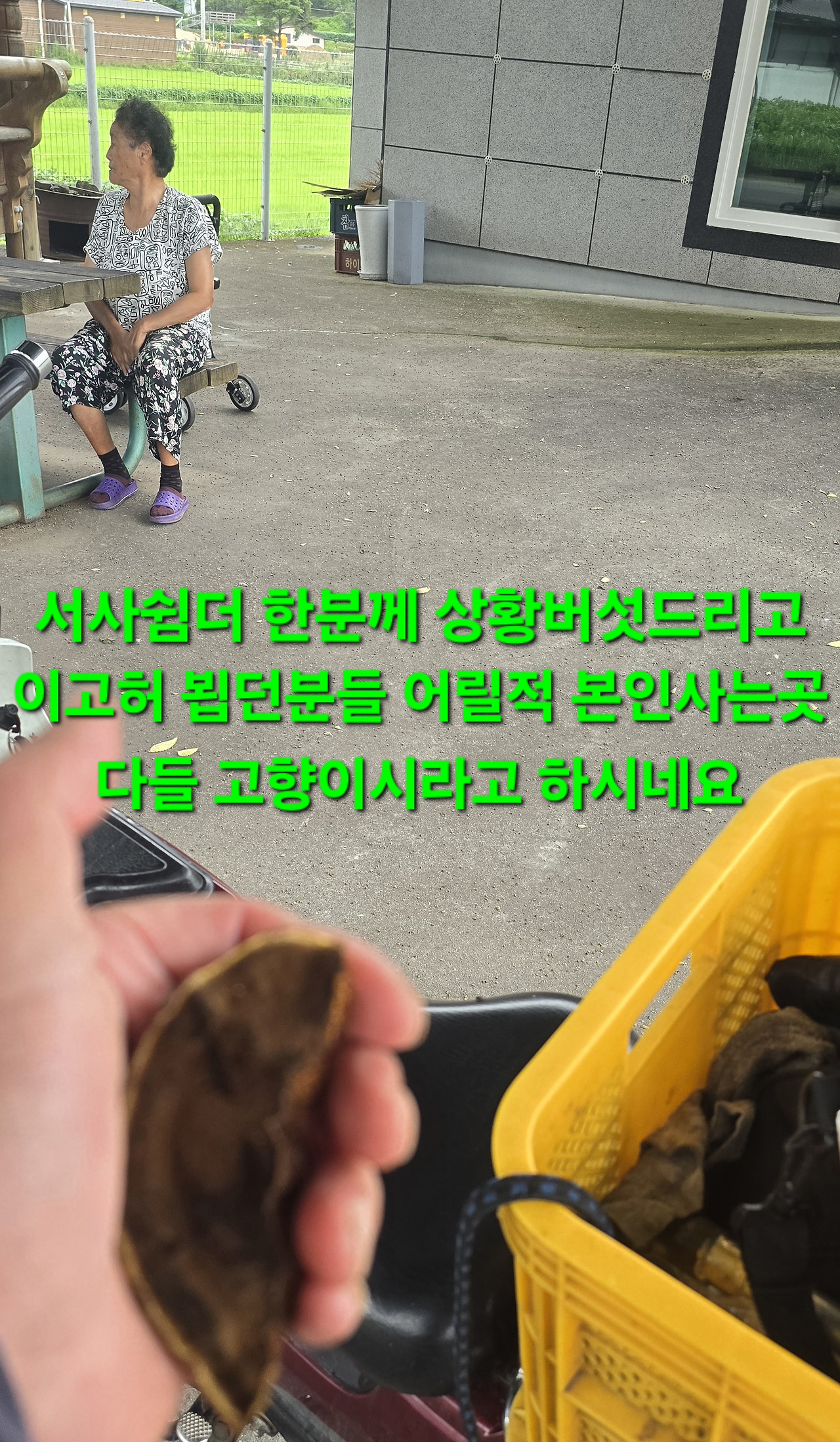 문경으로 이동 산행지 도착시까지 가랑비만 와서리 우비입지 않고 목청지 없고해서 상황버섯 장대로 큰건 높아서 못하고 산북면이 아닌 용문에서 동로로 갔어야 더 가까운 거리이거늘?늦은시각 한우 육회비빔밥으로 허기면하고 쉼터서 어르신들과 대화하다가