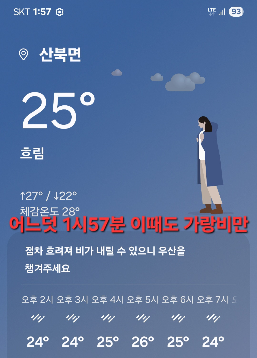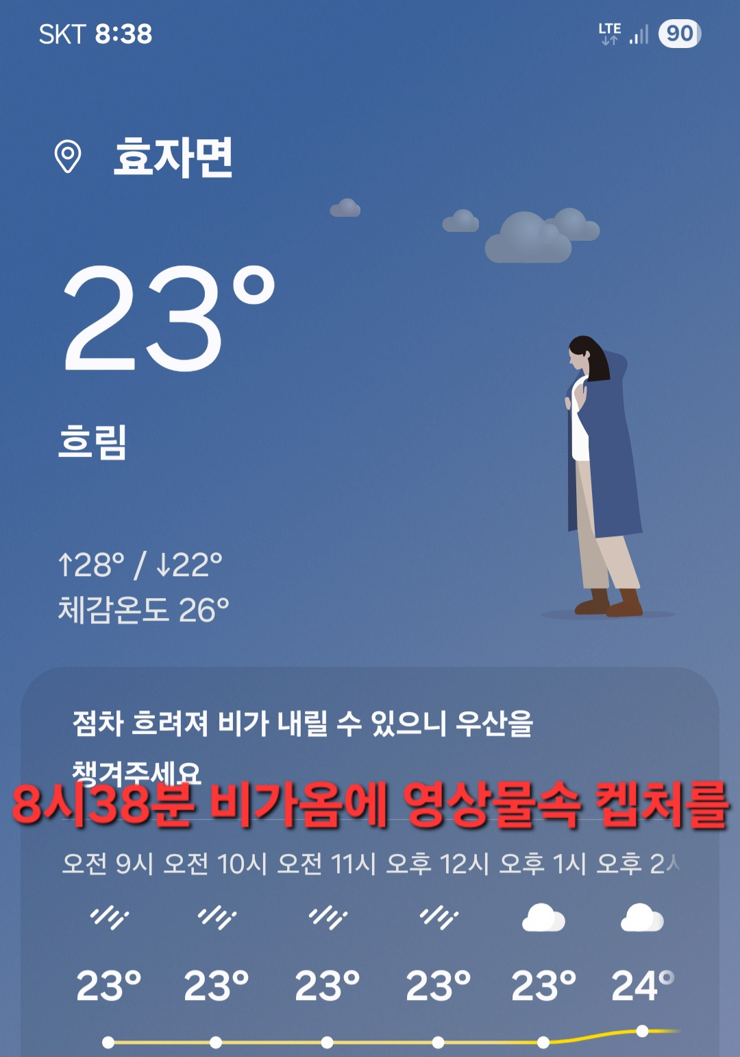 아침기상시 기온내려가 추버서 휴대용 에어켠 끄고 일기예보는 비오는중?하지만 안옴에 산행 준비하는데 약15분간 세찬비가와서 어제산행지 꾀꼬리지역 영상물로 자세히보며 스톱시커 켑처하고 당시 수확후 삼씨앗을 심었거늘 비그쳐
