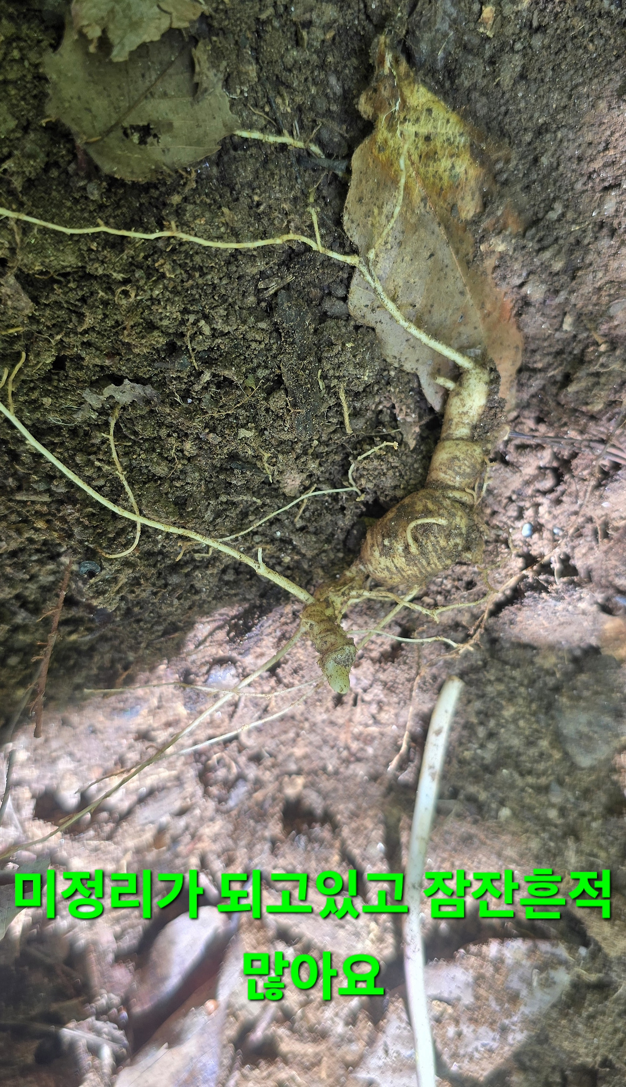 Gps입력안해서 찾는데 시간소비 몇시간 수색시 찾앗으나. 때삼지 당시 남긴곳 펴갔고 다행히 그간 잎장정리 잘못한것이 오늘 만나려게 위함에 채취 잠을 4번이상 잔둣 더이상 관리버거워 채취후 쉬다가 각구삼보고 하산후 흙을 담아왔고 마당서 채로 걸려내고 산삼 화분에 보관을 내일은 또?어딜
