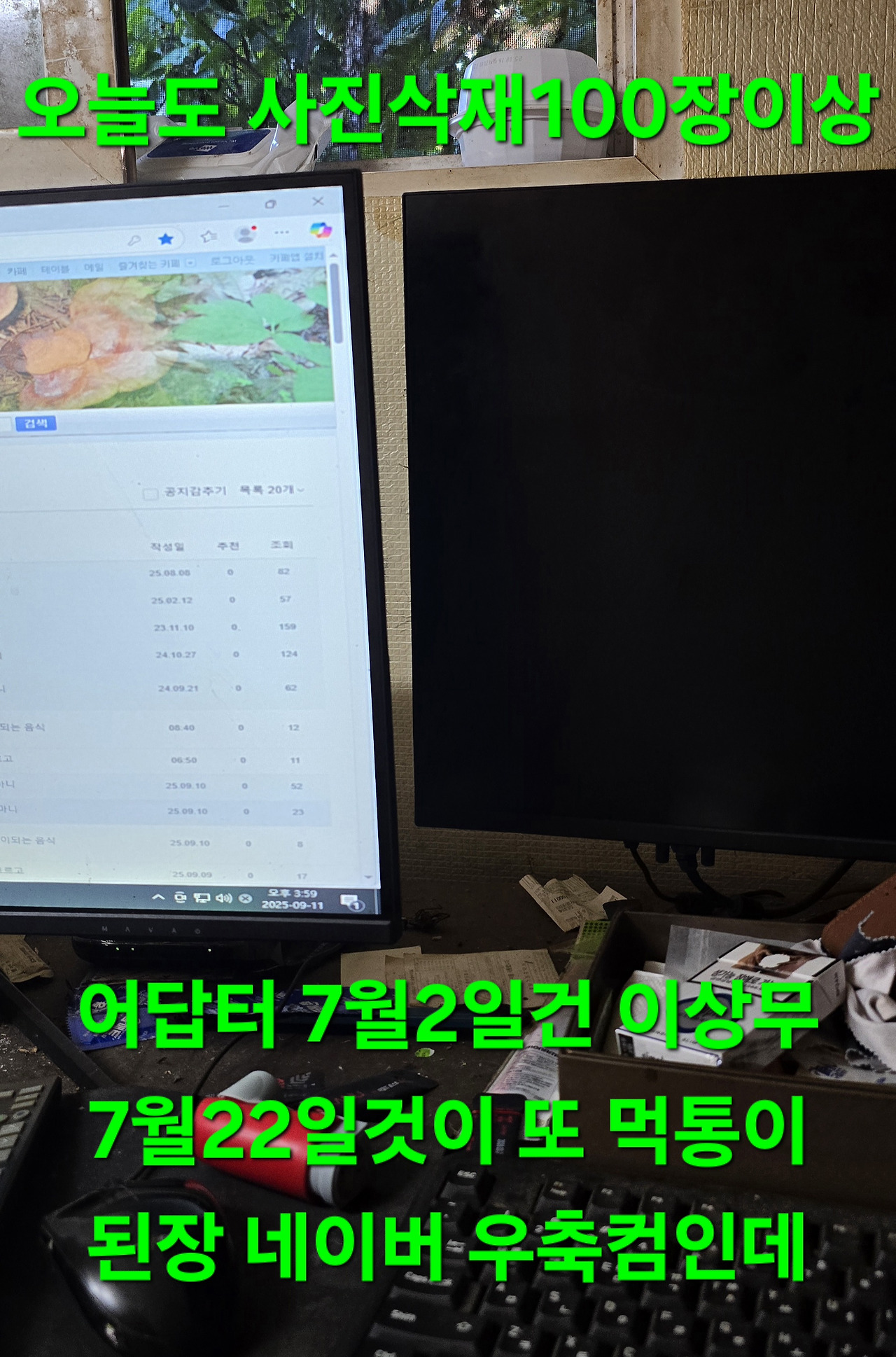 개간이?목청은 못보고 상황버섯만 지난 시산제때 참나무 목청지 선객이 손댔나?구멍안보이고 벌도없고 SK주유소서 기름만땅 농협주유소서 SK걸 구입한다는 오래전 들은바가?굴다리서 늦은끼니 때우고 귀가 얼른샤워하고 팥빙수와 수확물 옆 컴 모니터 먹통 어답터 이상 뺏다끼워도 안되는건 안됨 네이버는 우축컴인데 된장7월2일건 괜찮고 22일건 안되고 된장ᆢ