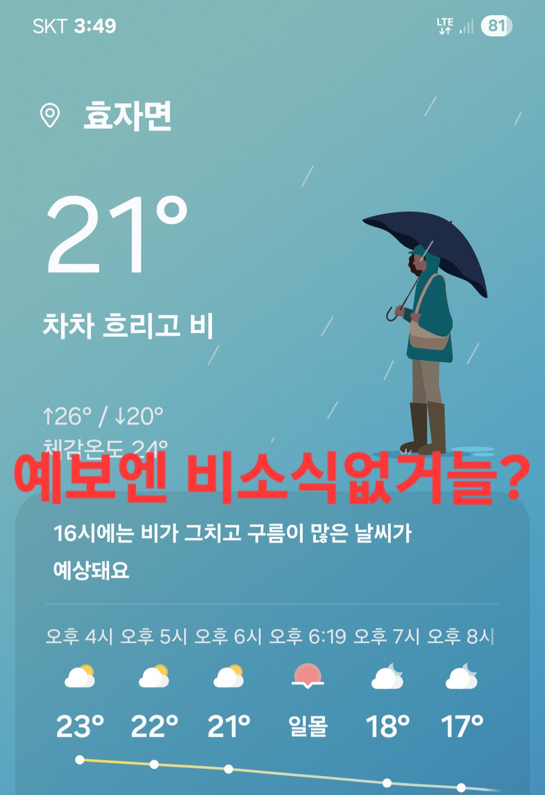 비로인해 산행못함과 고