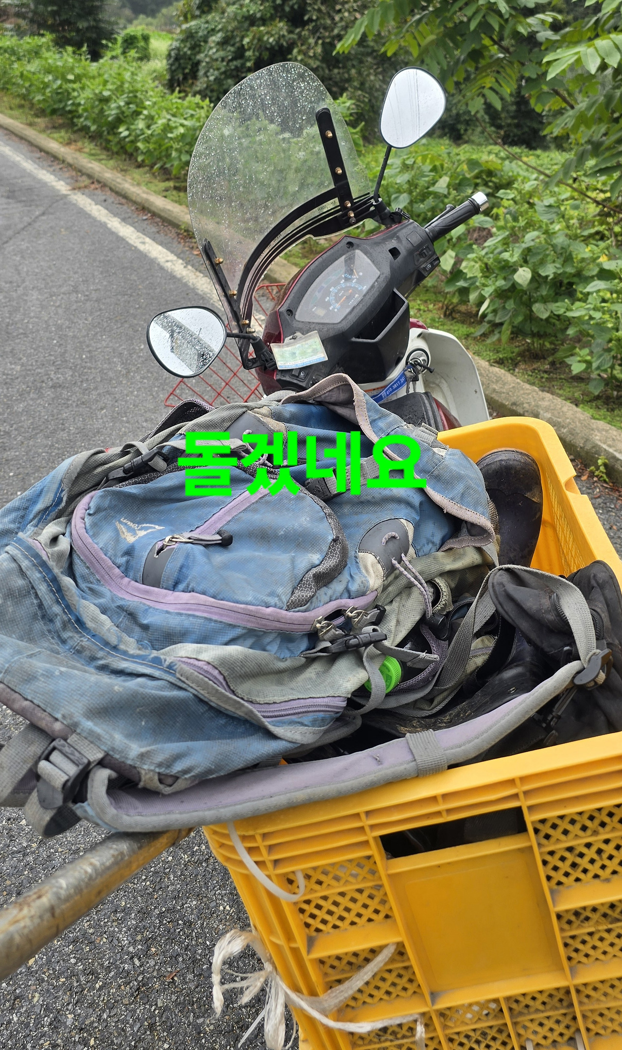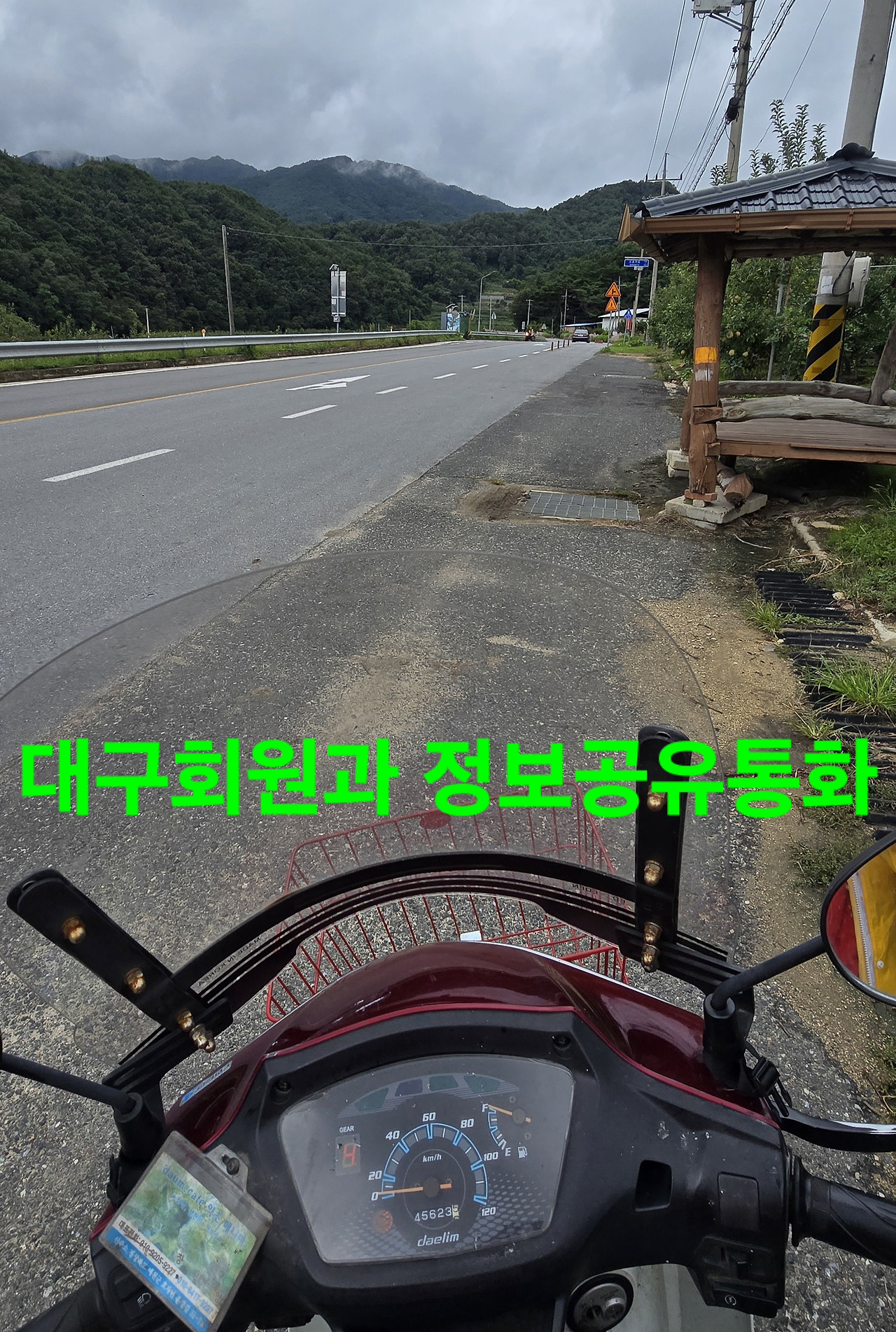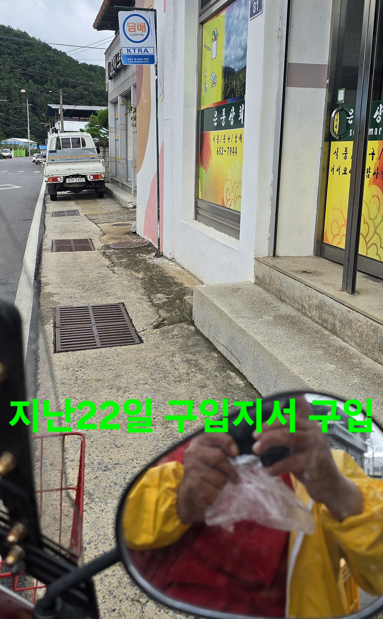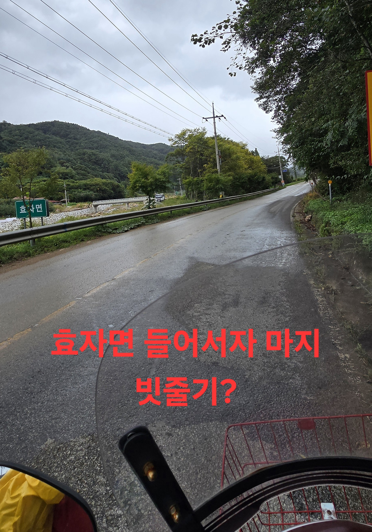 조금지나자 굳은비가 정오전 비그쳐 빵과 사과만 넣고 지난5일산행지 가려는데 중간도착전 강한비가 내리고 있어 우비입으며 은풍에 사는 선배님과 통화시 은풍은 비안온다고?사실이네요 담배도 살겸 기름넣을겸