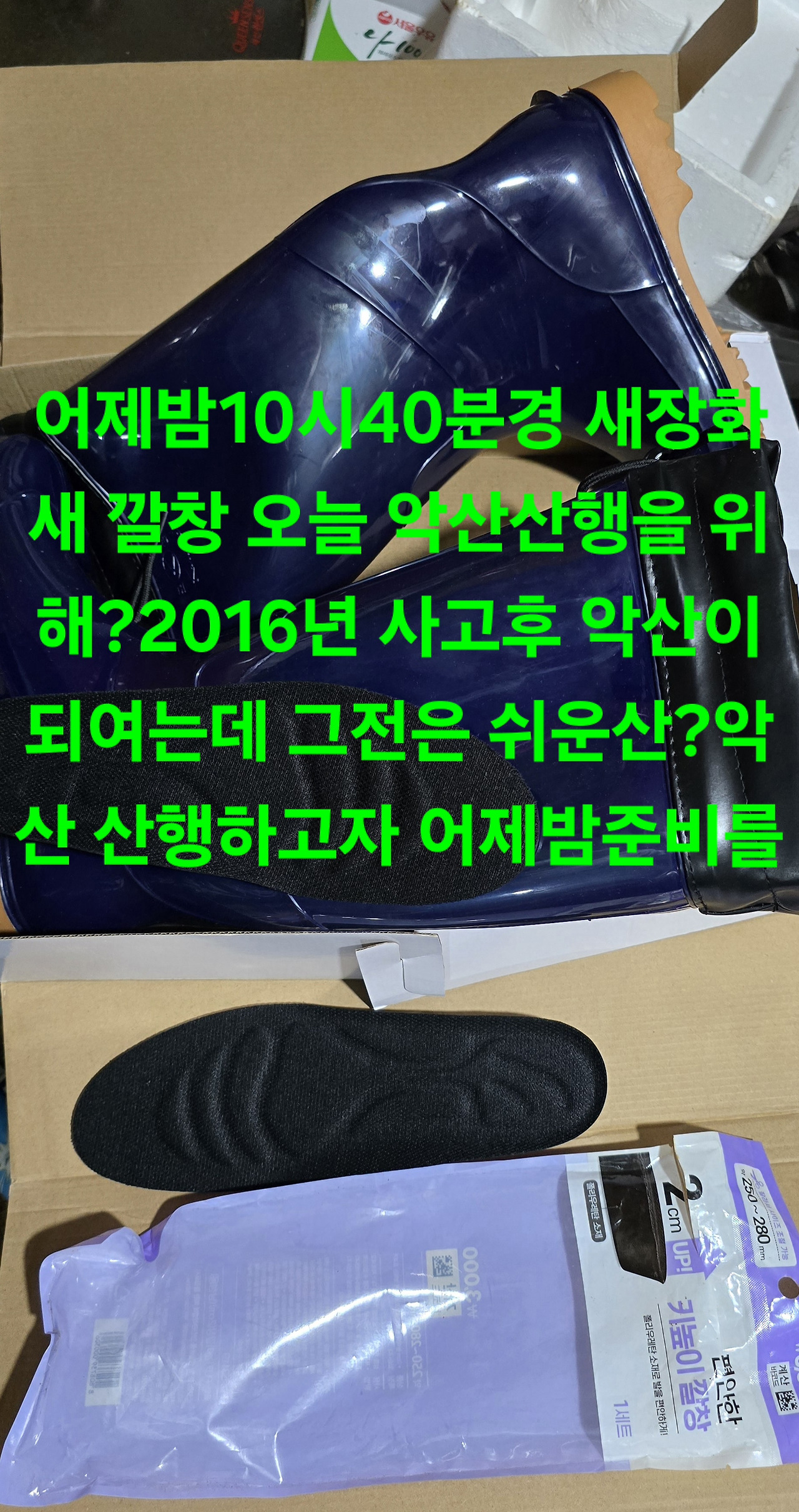 2016년 사고전만 해도 악산은 없었거늘 사고후엔 경사심한곳이 거의악산이라 오늘 산행하려고 한곳 참송이 능이 대박지 싸리버섯도 군락지라 가려고 새 장화에 새 깔창도 넣고 귀가후 낮잠에 수먼제(소주)마시는것 두배로 마시고 취취기상 하지만 기상시 가랑비
