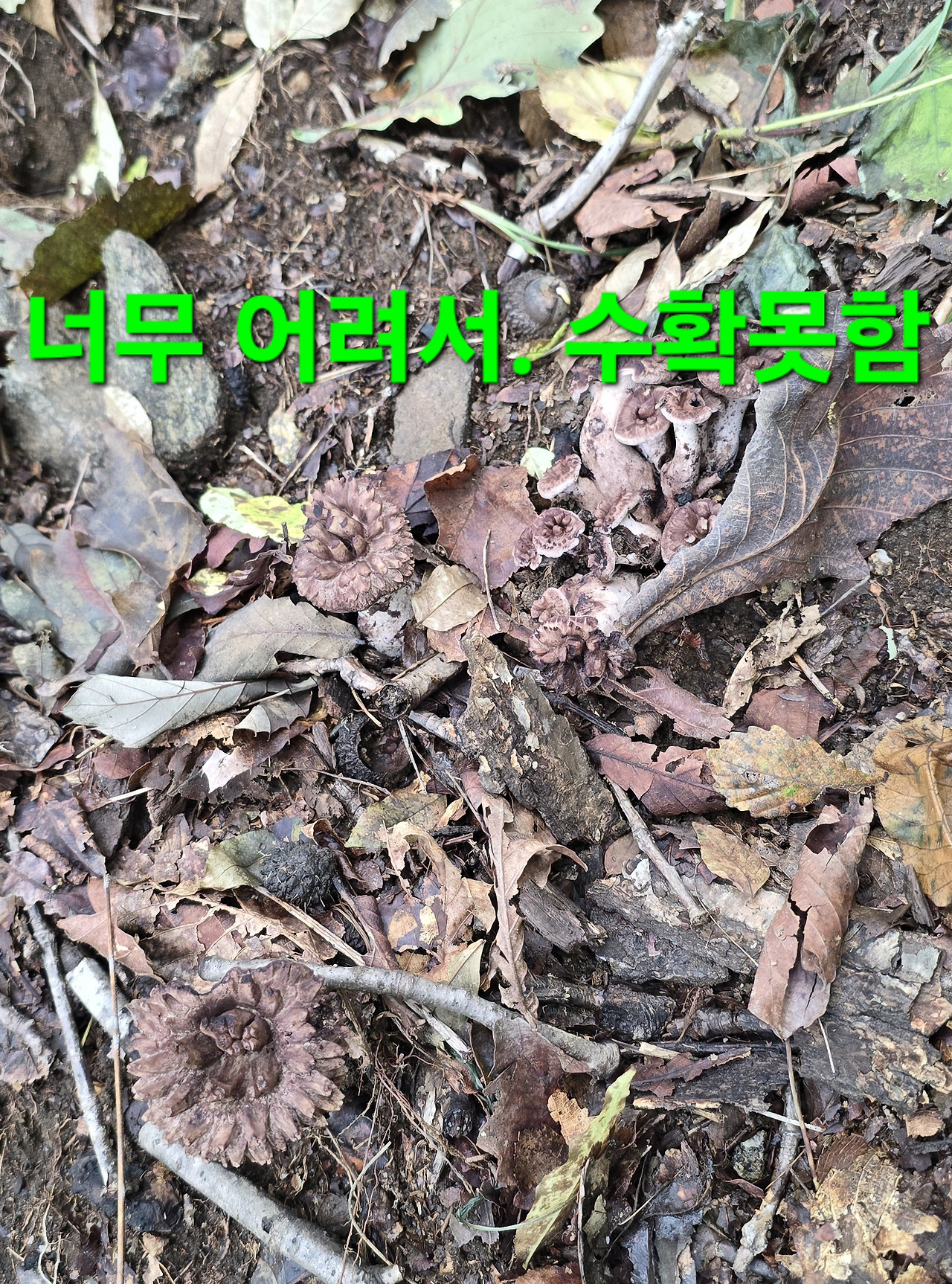 오늘 산행지는 35코스이상 능이버섯 군락지중 한코스서만 상품아닌건만 보기만 했어요 정상부근은 대군락지거늘 하나도 없고요 수도권과. 강원지역은 송이 능이 대박행진 회원님들이 수확물 사진을 제게 카톡을 보내고 있어요