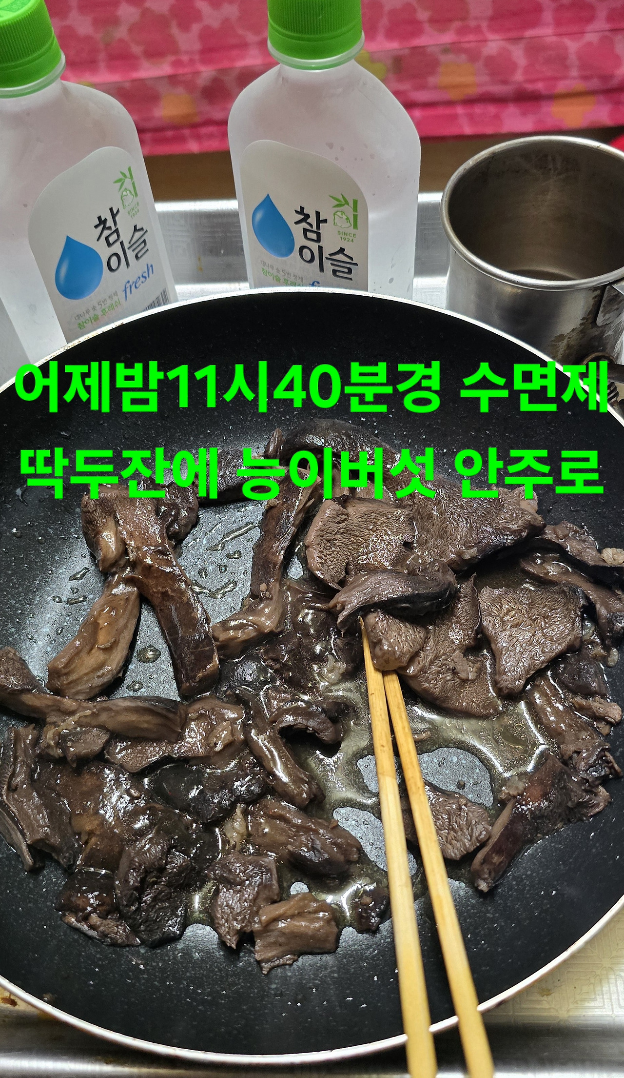 시작. 담주 가능성?하지만 썩어갈까?걱정 2년전 다친무릅 통증과 시큼에 애먹고 하산시 지난14일 담배구입 20일만에 다시구입 저녁한끼?뷔페는 중국식당변경 선배님 오시라해 미리주문시 송이버섯 몇개딴것중 하나갖고와서 첫송이 시음을 내일은 지난4일산행지로 수확물 상품아니어서 반으로 분배후 갖고온 송편 몇개
