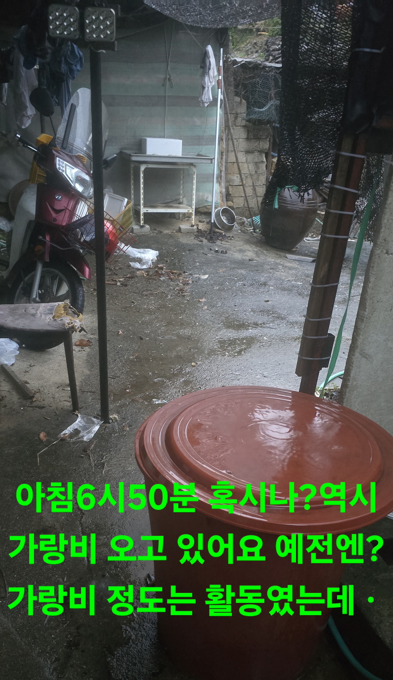 어제밤 산행기 올릴적 허기져서 참송이버섯 부스러기와 감지 가지넣고 푹 끓은걸로 저녁해결과 모두마무리후 졸도에 자정쯤 기상 티비보다가 음주로 취침 혹시나 기대는 역시니로 비는 오는중 고무다라속 빗물 오래동안 방치 이물질이 생겨 새로받고 지난해 값비싼 70리터 큰