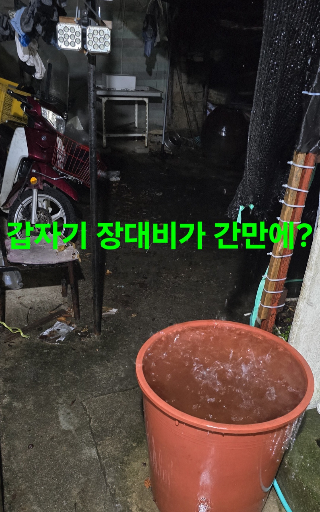 어젠 수면부족에 마무리후 방바닥 전기판넬 작동이라 방바닥따근해 그냥 눕자마자 졸도 티비켜놓고 자서리 티비소리에 기상 밖은장대비 폭우가 쏟아지고 싹올라온 감자 먹어치워야해서 오늘밤도 추석전후 열흘이상 가랑비 와도 밤새 반나절 비량보다도 안되는 도량 비량이 많아
