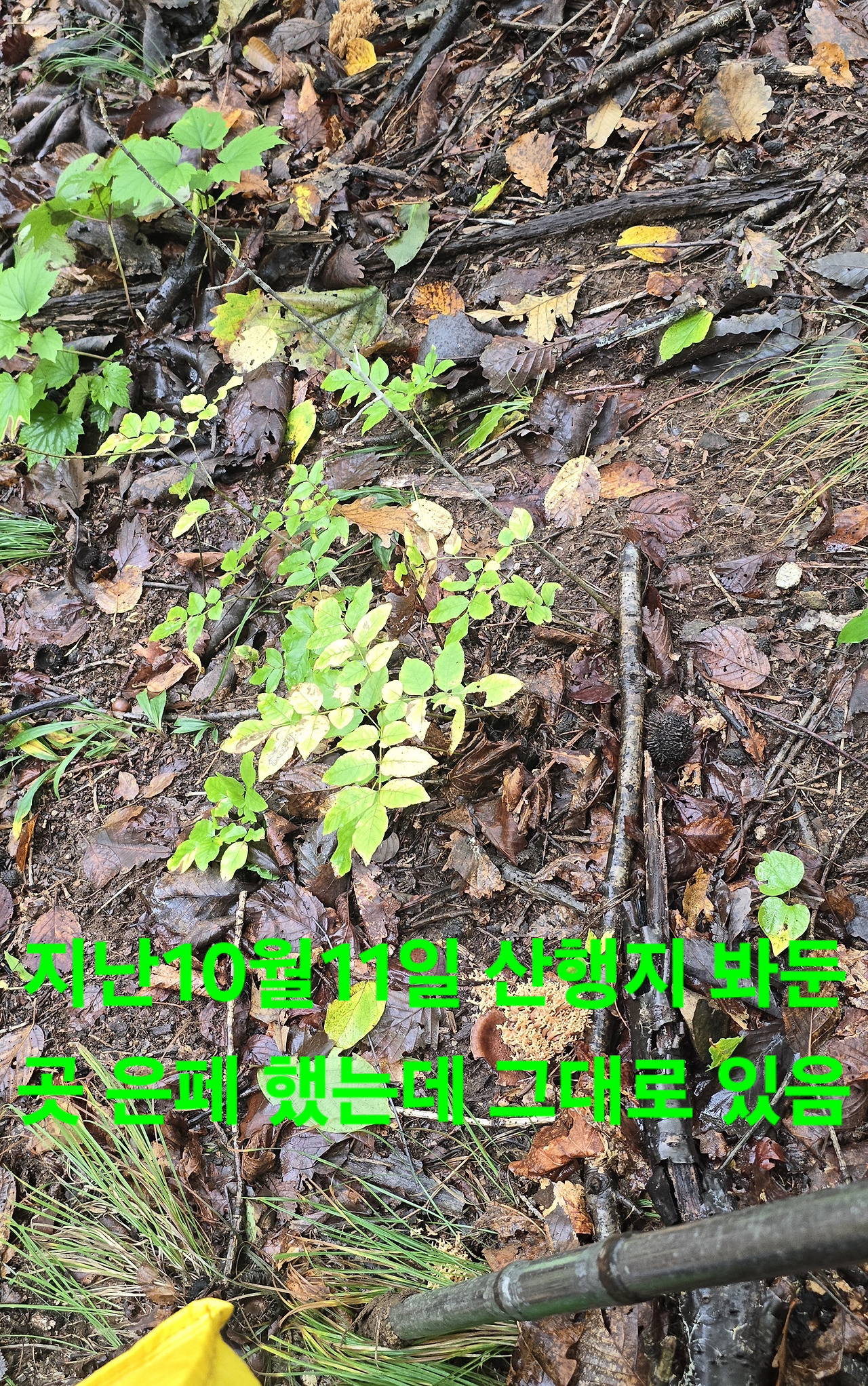 11일 산행지로 6일지났건만 성장더디고 새롭게 나온것들 많고 국버섯과 산밤수확 시간되여 성신도착시 스노우타이어가 없다고?간김에 마트서 생활용품 구입후 터널서 각싸이트 지인들께 보내고 귀가 수확량 그런대로ᆢ