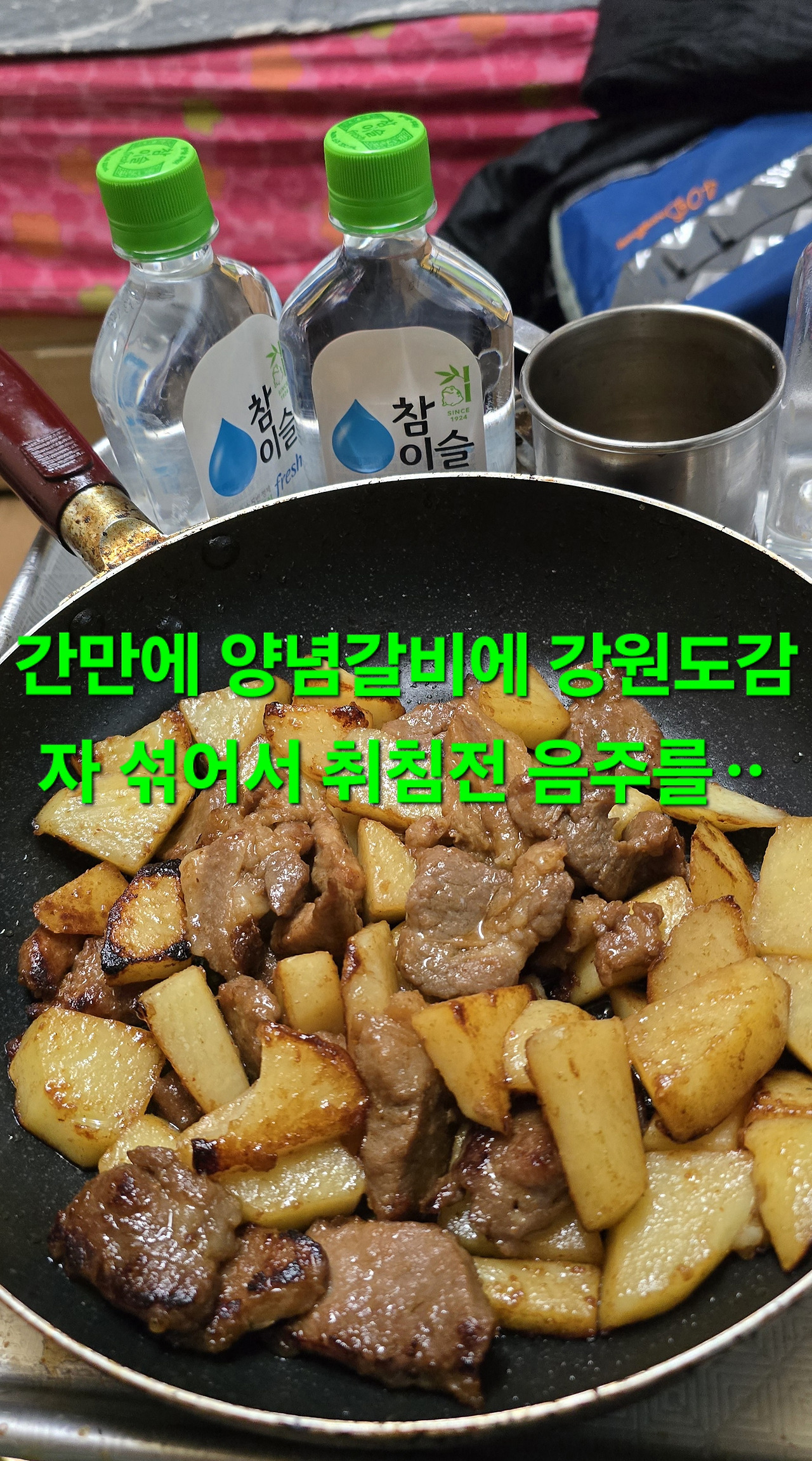 오늘 0시넘어서 양념갈비에 횡성 회원 선배님께서 보내주신 감자섞어서 안주삼아 기상후 다시먹고 상경전 세탁하고 찌든게 잘산되어 상경희 마눌이 세탁기 세척제 넣고 돌리면 찌든것이 된다고 산삼주와 장생산도리지 담금주와 어제 햇꿀 목청 500g도 참송이버섯도
