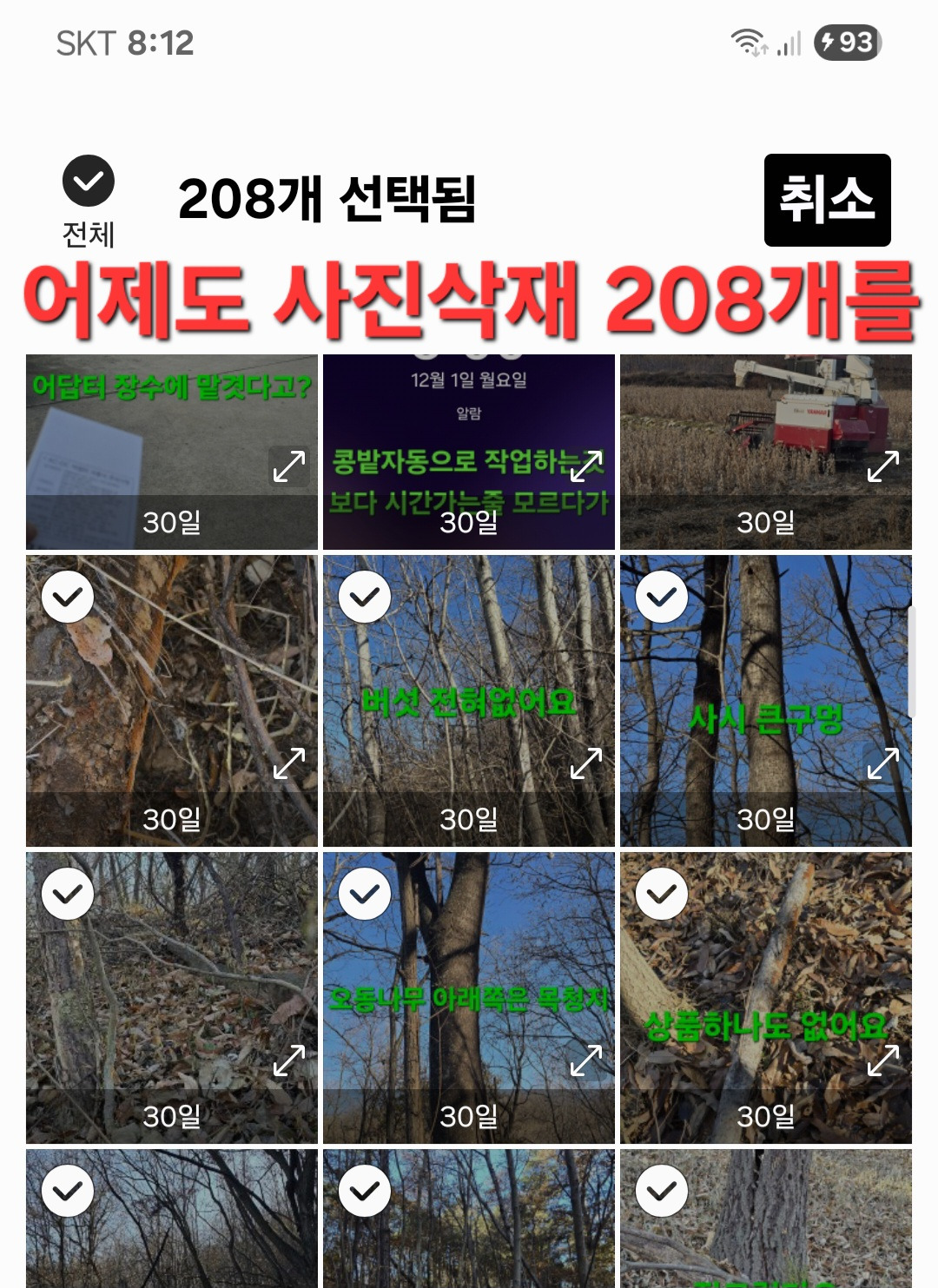 어제밤엔 혹시나 해서 세탁기 돌리고 잠옺이 티가 안빠져 세탁크리너. 청소한것에 세탁하니 그런대로 깨꿋?어제 식재료 마트 필요한것외는 농협마트서 모두비쌈에 구입한 군만두역시?모래재 큰공사 하는둣?성신도착시 베기통이 막혀서 소리난다고?머가먼지?오늘은 단산면 상황지서 산행 두번째는 순흥면서 세번째는 지난11월8일 수확후 꼭대기것 작대기 구해수확을 끼니때 빵은