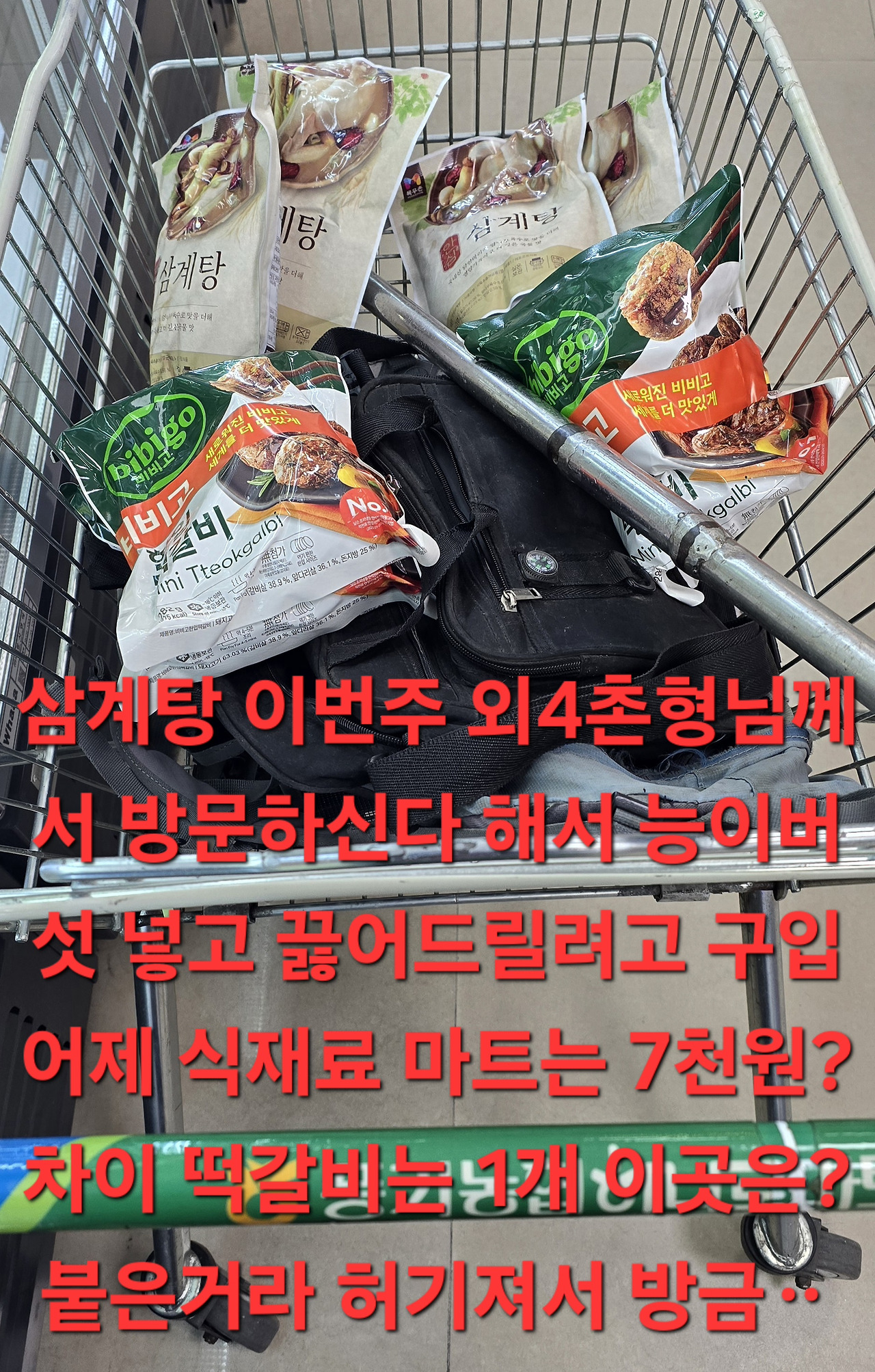 맛없어 베냥에 돈가스식당 영업한다고 해서 갔더니 금방 가셧다고 에궁 허기짐?몽땅가려다 등산화 벗기가 쉽지않아 패스 기름넣고 농협마트 떡갈비 식재료는 개당1만4천원 이곳은 2개에 9천원대 삼계탕도 그긴 만5천원 이곳은 9천5백원대