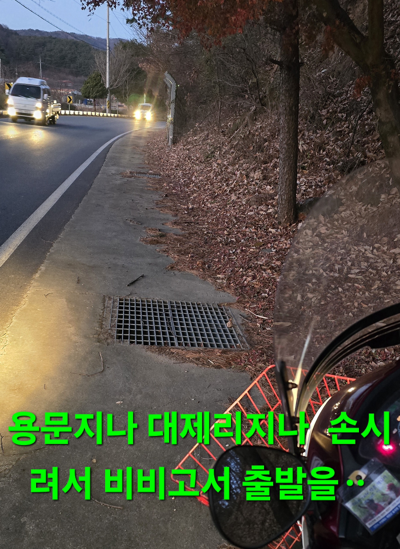 용궁면 이동 뚜꺼비 순대국밥 먹고싶어 왔으나 외출중 운영자님과 내년시산제 상의하고 전번을 알러주셔서 통화 순대국밥 늦은시각에 먹고 시각이 4시가 넘어서 주행중 답사도 기름닣고 손시려고 두곳서 잠시 쉬기도 내일은 오늘보다 더 춥디는데 내일 쉴까요?