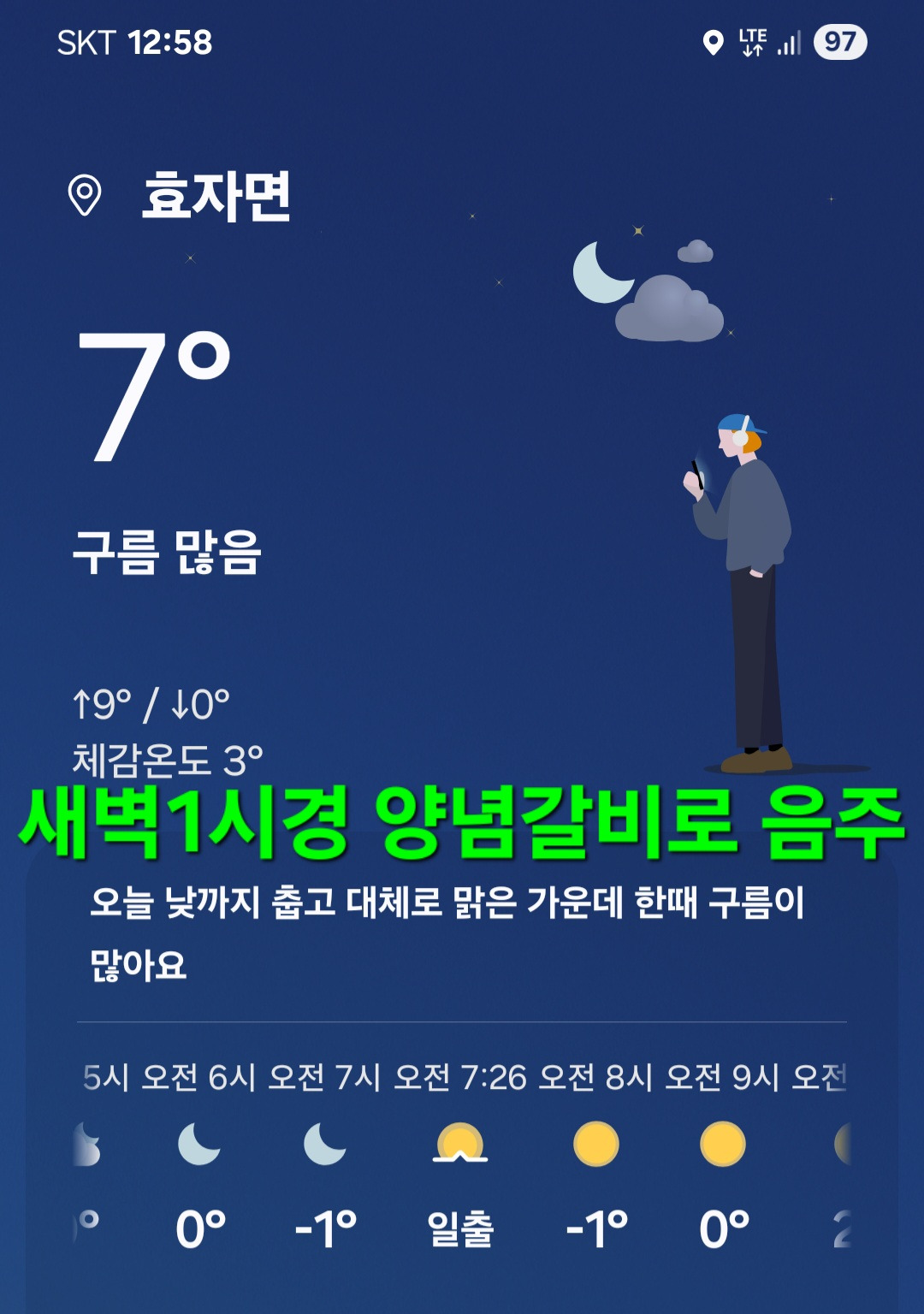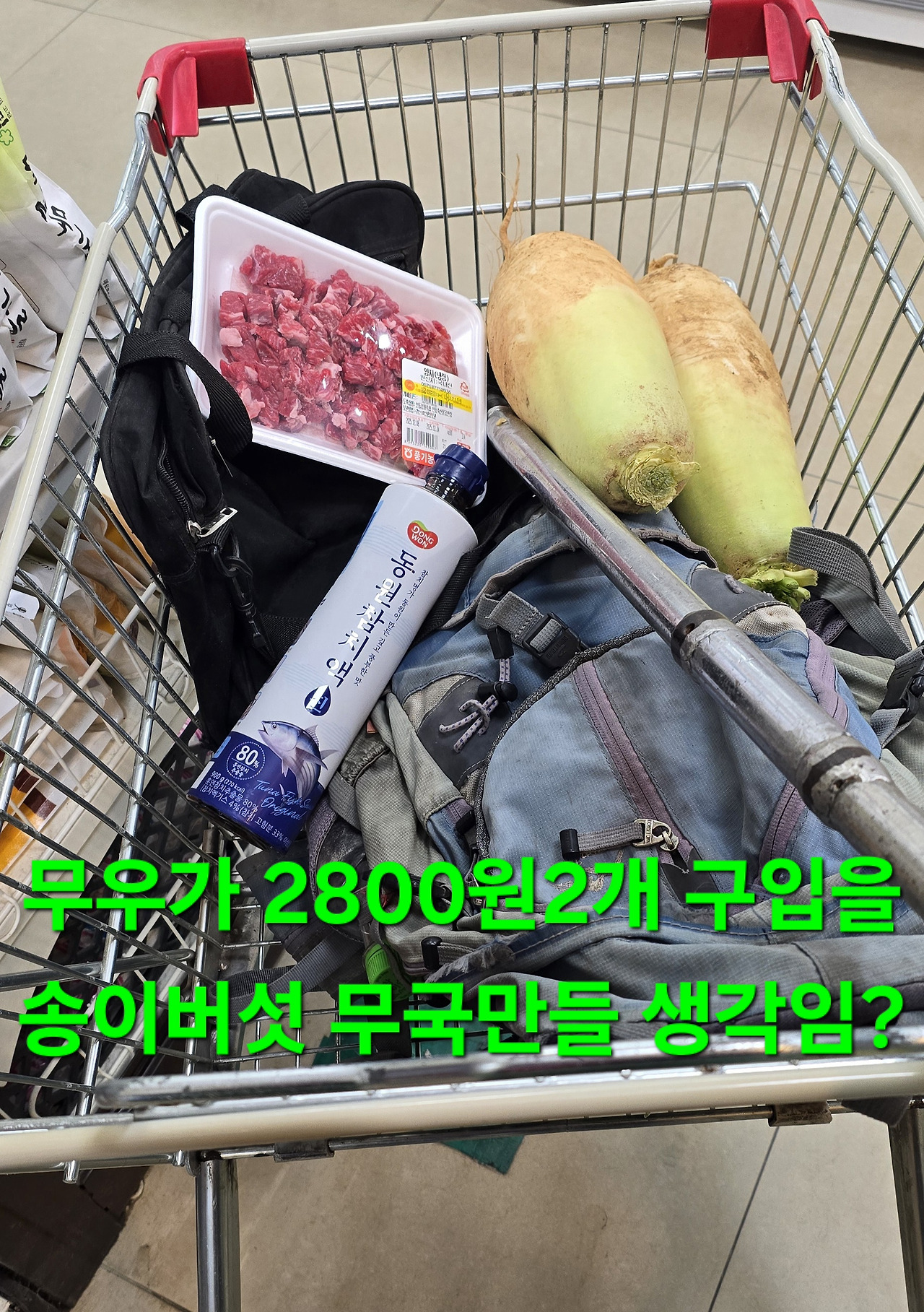 갔으나 공사중 포장 곰국 두봉지만 뼈다귀서 식사후 이곳 사장님 산도라지 주문 땅이 얼어서 켈수 있을지?농협마트서 양지고기와 무우 삼치액젖 구입후 필마트 5시에 주문한 케익빵 포장주문15개 구입후 귀가 찔끔수확후 송이버섯 무국으를 약한불로 큰냄비에 끓이고 있어요 앞전 김치찌게 한끼정도 남앗으니ᆢ