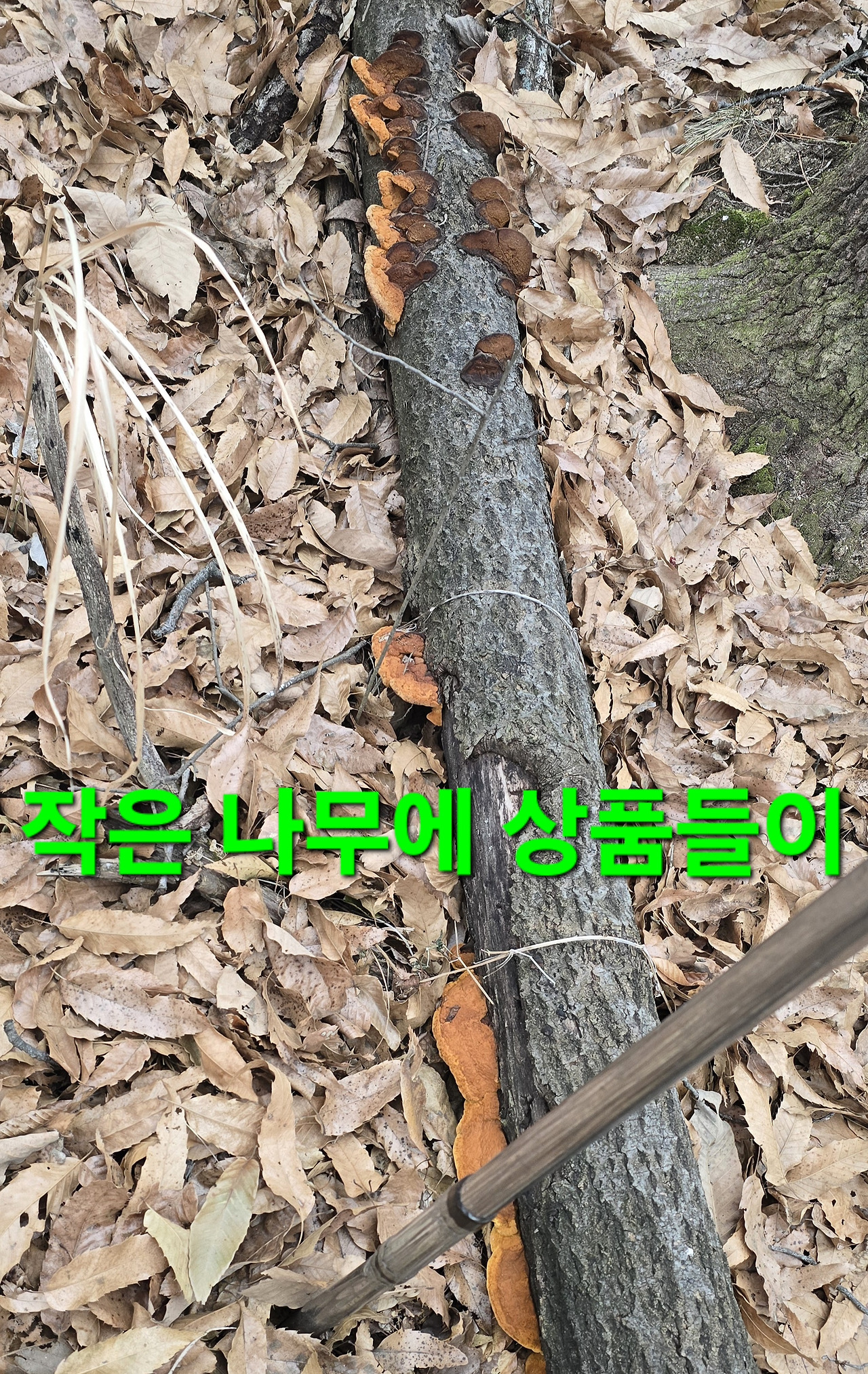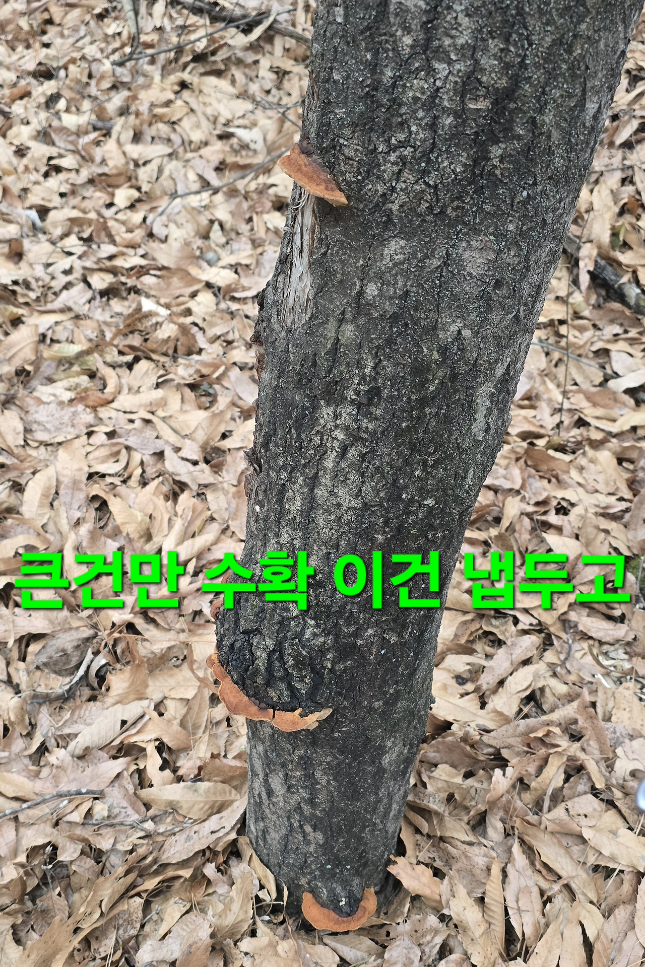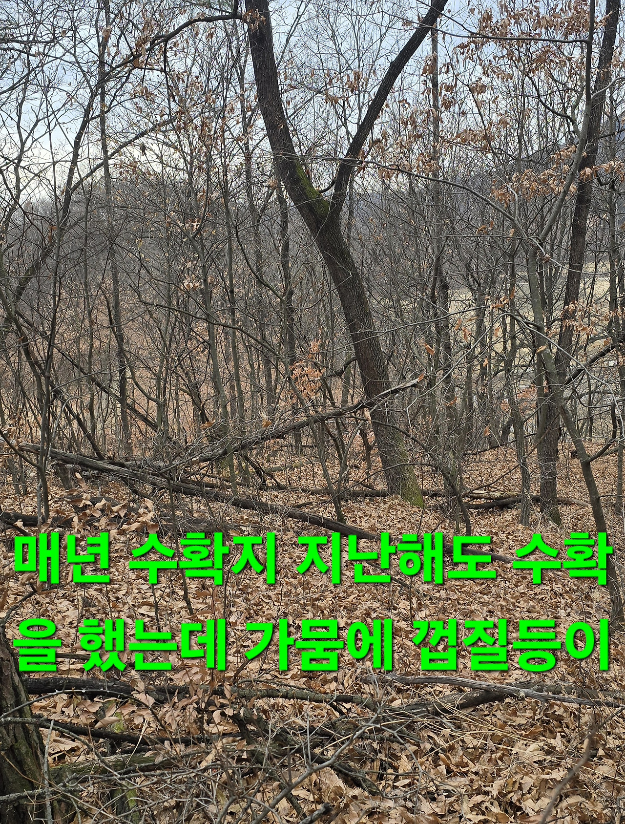 지 이삭이라도 줍기위해 지난해도 작대기로 수확지는 언넘들이 엔진톱으로 짤라 해갖고 대박지 불안감에 도착 나무껍질 없어지고 새로운것들이 있어 수확후 6시경 컴컴할때