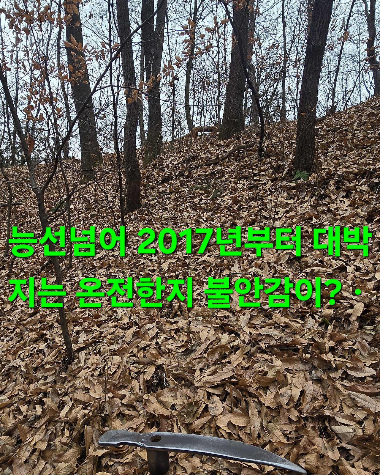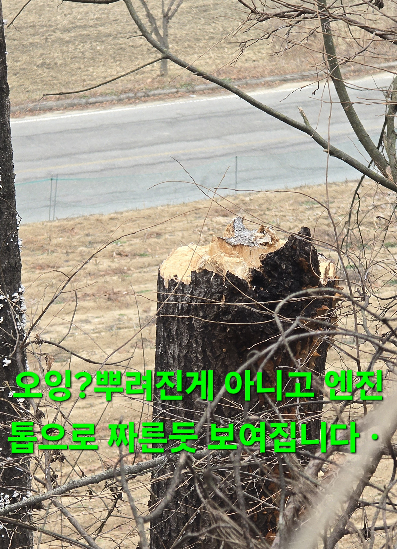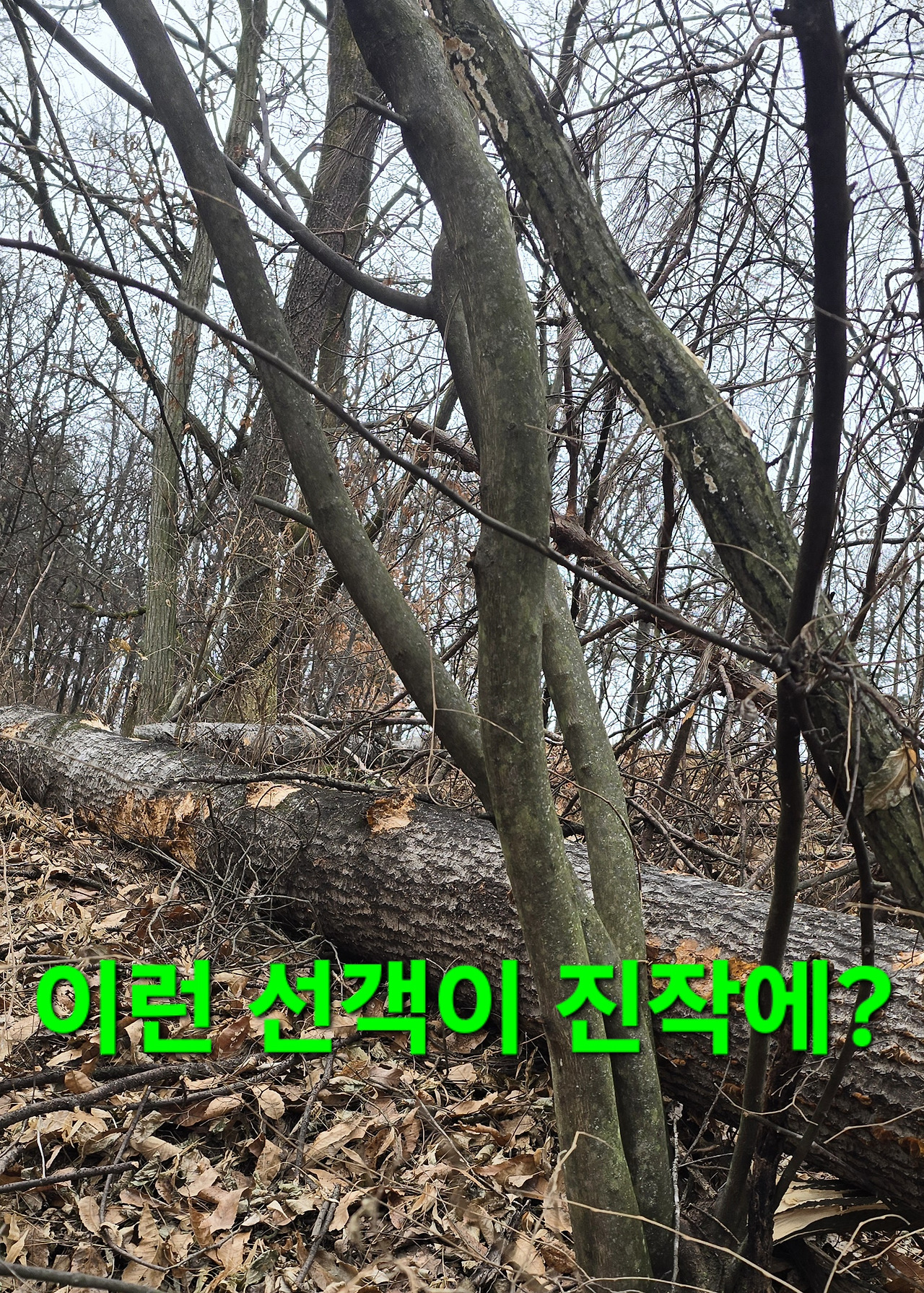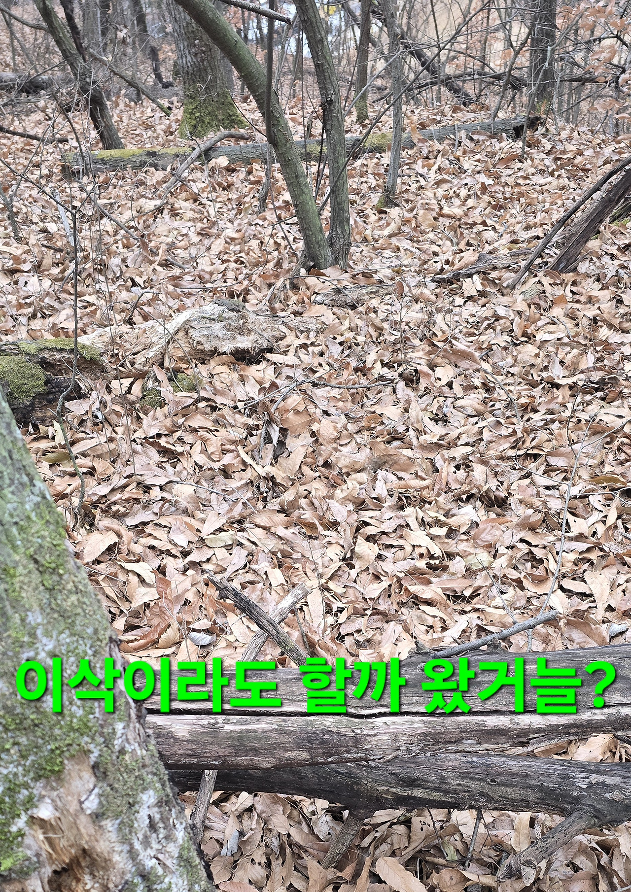 지 이삭이라도 줍기위해 지난해도 작대기로 수확지는 언넘들이 엔진톱으로 짤라 해갖고 대박지 불안감에 도착 나무껍질 없어지고 새로운것들이 있어 수확후 6시경 컴컴할때