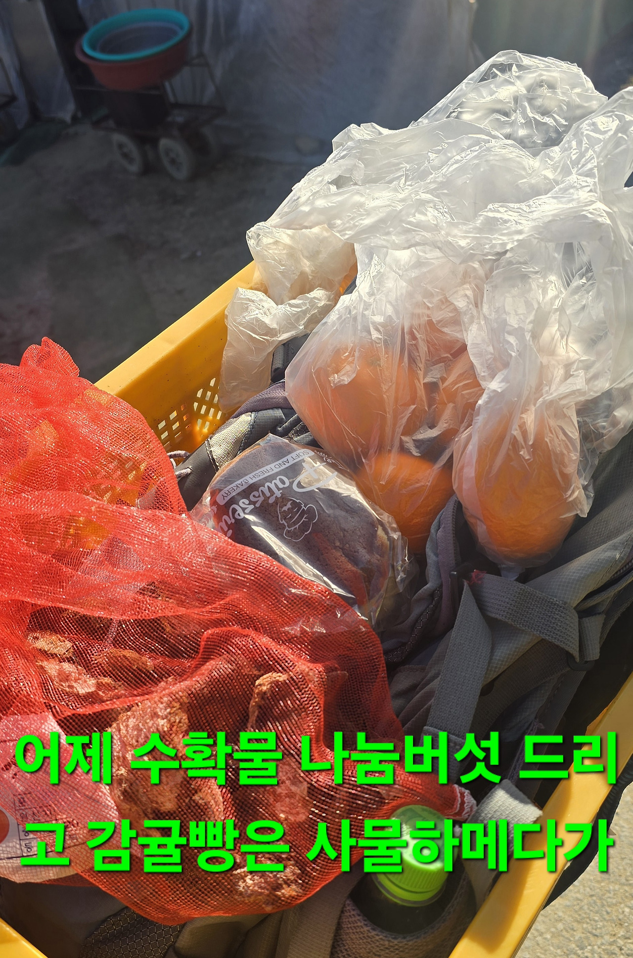 버섯 수확후 다시 위치 찾다 4차선 도로 샛길찾아서 사시나무에 구멍많아서 수분섭취 제대로 못해 성장더딤에 약간수확후 어제넣엏더곳서 반땅넣고 사고자 하는것 구입 소잡뼈는 구입에 없었으나 구입 그리고 풍일식당 지인기타에 나눔후 귀가 미니참이슬 6병밖에 없는데 에궁ᆢ