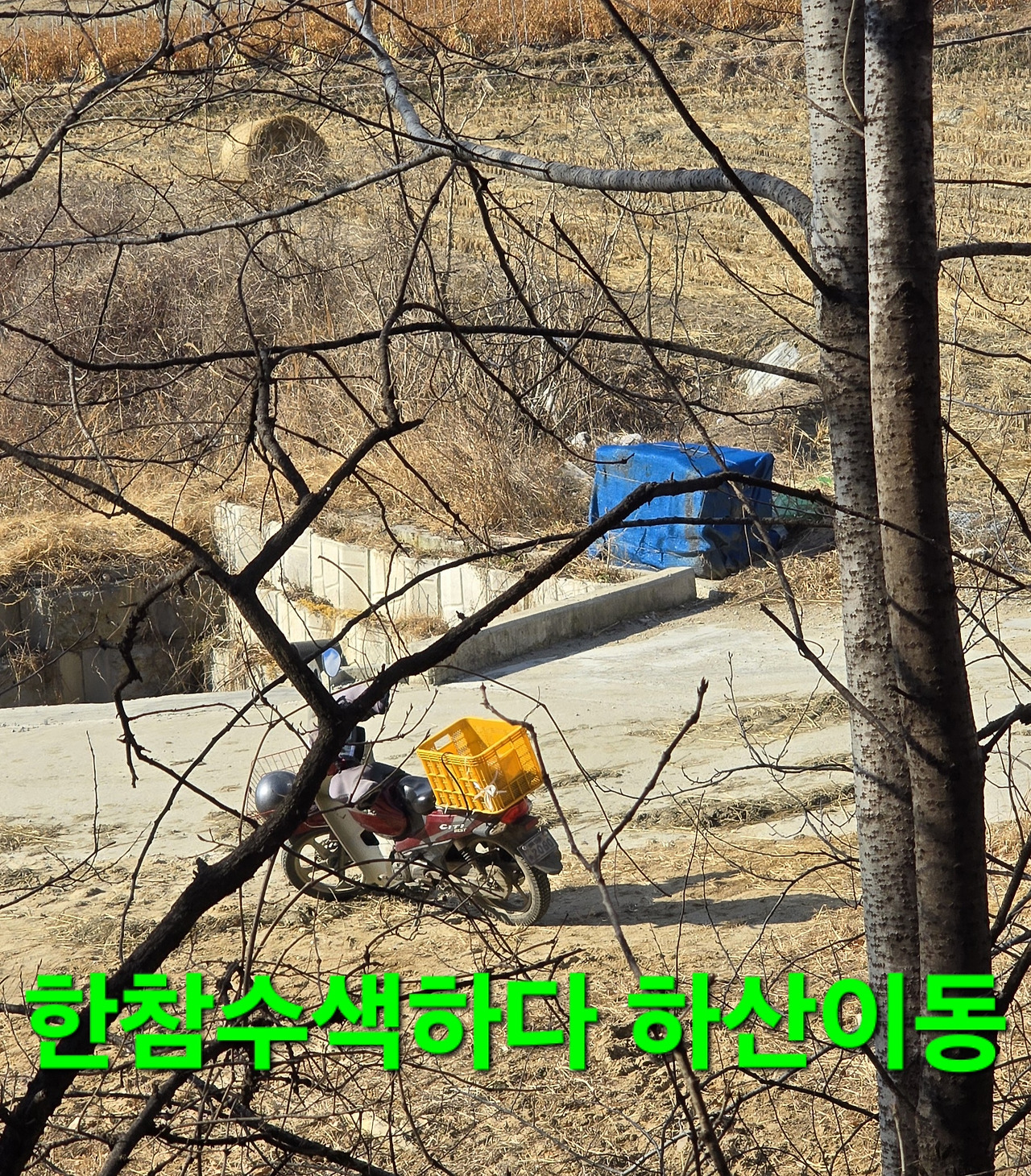 그곳역시 가뭄에?역시 널부려진건 성장노우 조금 수확후 예전대박지 앞전 벌목에 밭뚝옆것 수확차?도착시 흙더미?이리저리 답사하다 큰집동네 거치고 다금식당 아무도 없고 생돈까스서 허기 얼른먹고 귀가 산행중 다시주문에 200g덤 드리고 오늘수확 좋고요