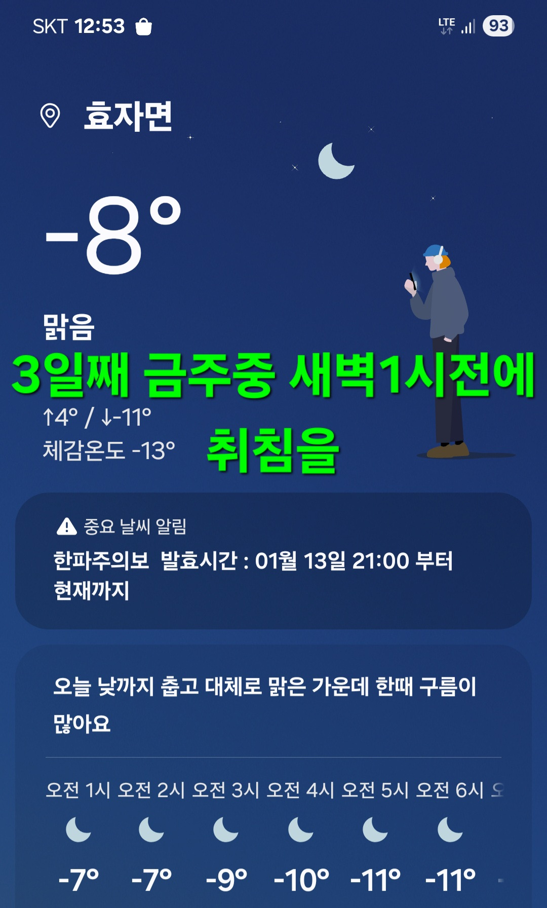 어제 성신서 못온건?모래재 눈길때문인둣에 지난해 6월3일 백두대간서 빵구나서 부른곳 혹시나 전화 아침에 온다고 3일째 금주중 일찍취침 기상후 마당 눈쓸고 염화칼슘도 뿌리고 연락도 없고 삼각김밥 풀줄몰라 전자렌즈에 데피고