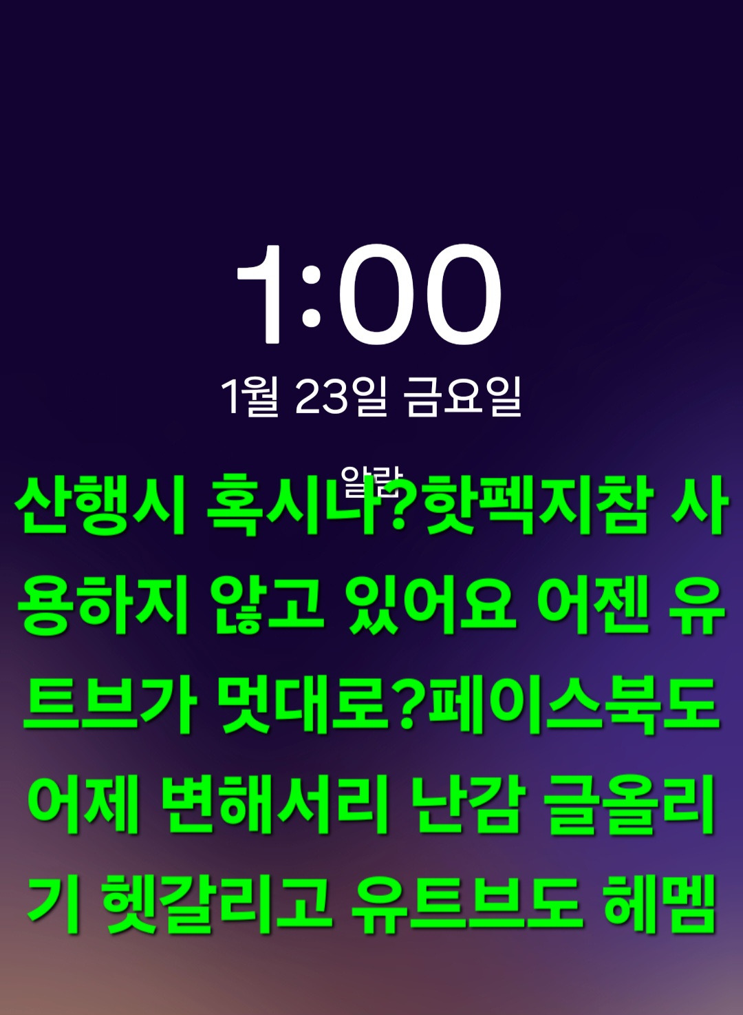 지난해 구입한 떡갈비와 러비아나 그대로 있어 사골국 얼어서 먹지못함에 금주12일째 어제밤에도 37명 없어지고 된장 스트레이스 쌓이고 아침 주행시 우제국 도착시 조끼입고 오지않아서 택배 보낸후 집에가서 조끼입고 이틀전 감태나무곳서 수확하다 가방끈어져 단골세탁소 휴무 두곳다 안됨 나눔버섯 드리고 영남에도 드리고 열선 2단계로 했더니?더 뜨근