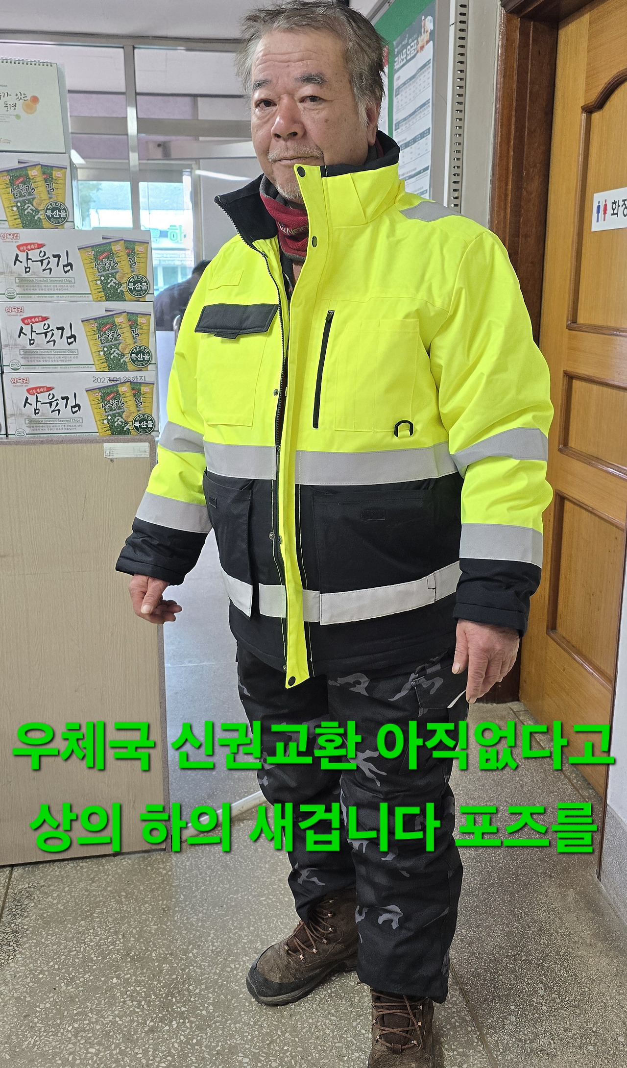 어제 세탁기 호스녹아 작동시 작업복은 개당시간을 야광복은 시간당 3번 총 5시간 세탁을 그래도 때물완전 제거안되고 덕분에 늦은취침 기상시 다른세탁물 꽁꽁얼어서 비닐로 건조 우체국 신권 교환 없다고 담주라고 상.하의는 새것이라 포즈찍고 읍네 엔진오일 교체 다른곳은 9천원 만원 이곳은 6천서 7칀원으로 인상 어제도 기름값때문에 빙돌아서?
