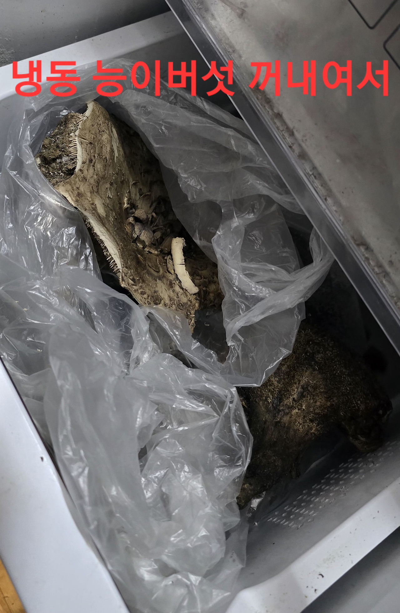 어제 저녁 외사촌 형님 3일 오셧다가 이천으로 가서 백숙에 넣을재료 어쩌고 하시여서 낮잠 많이 자서리 아버님집서 갖고온 김치냉장고 냉동실이 되여 삼계탕 꽁꽁얼어서 해동후 능이삼계탕 낮에 낮잠맗이. 자서 새벽3시넘어 취침 와중에?전기찜질기에 힢에 화상입고 미련탱이 기상시 마당얼어 염화나트름 뿌리고 녹아서 우체국에서 나눔버섯 택배 오늘 사고