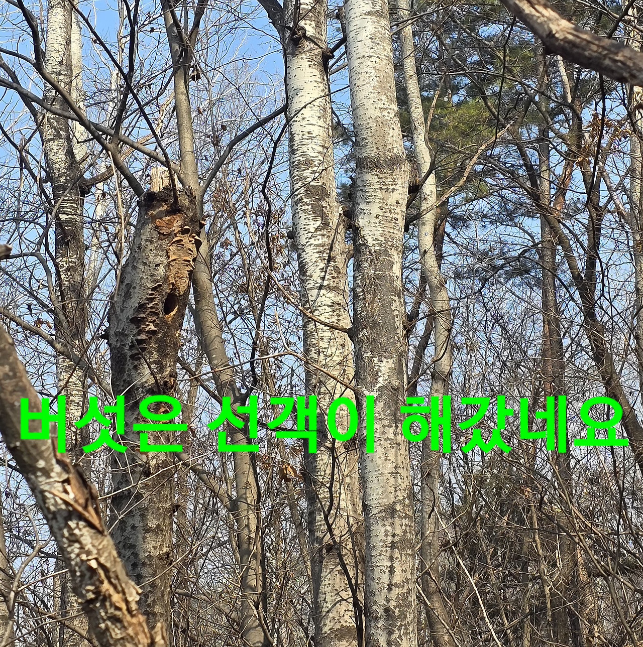 어젠 음주 수면제 복용?일찍취침 어제보다 일찍?하지만 읍네서 볼일에 그래도 어제보단 조금빠르게 어제 개척산행지 대박지도착 오늘도 어제만큼 기대?3/1밖에 안된수확 하산후 어제 가려듼곳 아름이 구멍속 답사 상황은 선객이 구멍좋으나 나무가 작고 다른곳 곳곳 수색하다